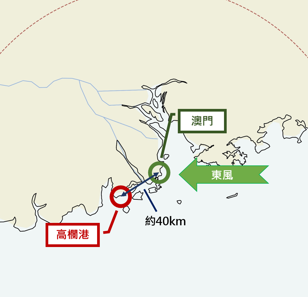 由於高欄港位於本澳西南約40公里,而本澳現時及預測未來兩日將持續受偏東氣流影響,吹偏東風,而高欄港位於本澳的下風處,按照上述的氣象條件,預計爆炸所冒出的濃煙不會直接影響本澳。