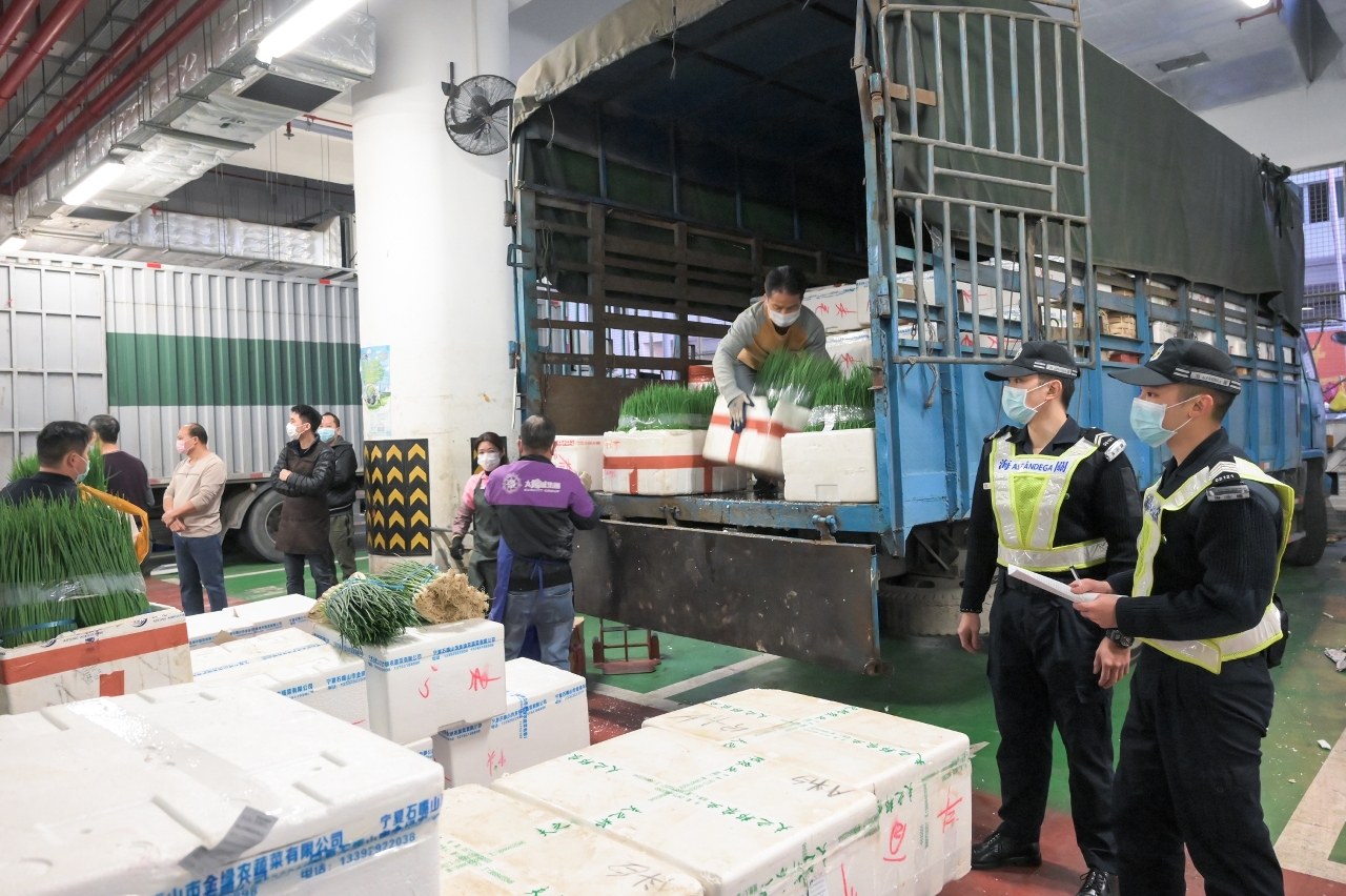 雖然疫情嚴峻,每天清晨,市政署、海關人員及業界人士,仍在批發市場內努力工作,以配合特區政府在食品方面保供應、保質量、保物價的承諾;有他們的付出,我們大可放心,毋須搶購、恐慌!