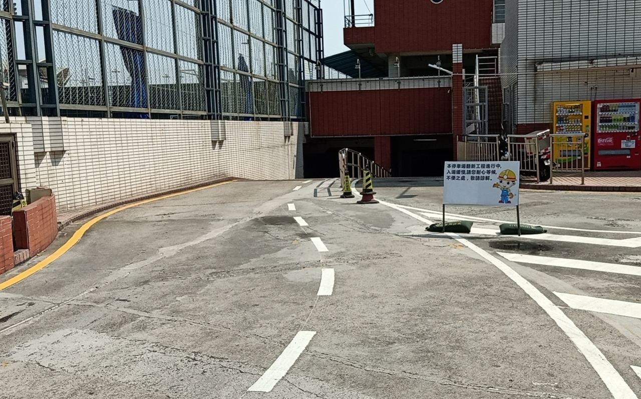 地面層往地庫一層入口斜坡封閉,車輛僅以出口斜坡臨時進出。
