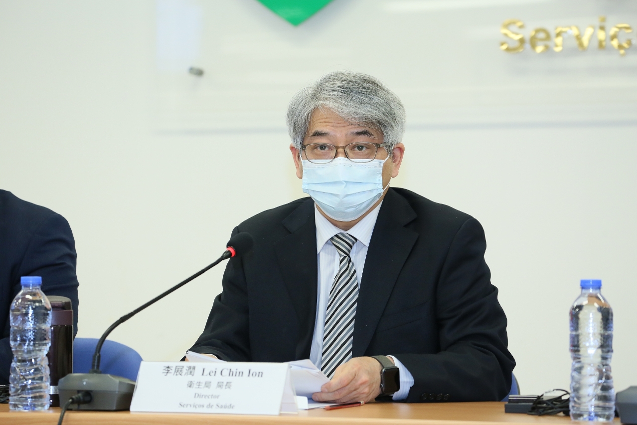 新型冠狀病毒感染應變協調中心(下稱應變協調中心)於今(20)日舉行例行記者會,衛生局李展潤局長、旅遊局執照及監察廳陳露廳長、教育暨青年局教育廳江毅廳長、治安警察局居留及逗留廳黃劍虹代廳長、治安警察局行動及通訊處馬超雄處長、仁伯爵綜合醫院急診部協調員曾潭飛醫生、疾病預防控制中心傳染病協調員梁亦好醫生共同會見傳媒。