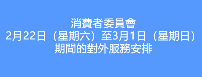 為配合特區政府防疫措施,減少人群流動和聚集,以降低病毒散播風險,消委會透過特別設立的電話專線(電話:89889315)維持向消費者提供對外基本服務至3月1日(星期日),專線每天上午9時至下午6時由專人接聽消費者的諮詢及消費投訴電話,消委會接到個案後會儘快跟進及處理,並在消費者有需要的情況下給予相應協助。