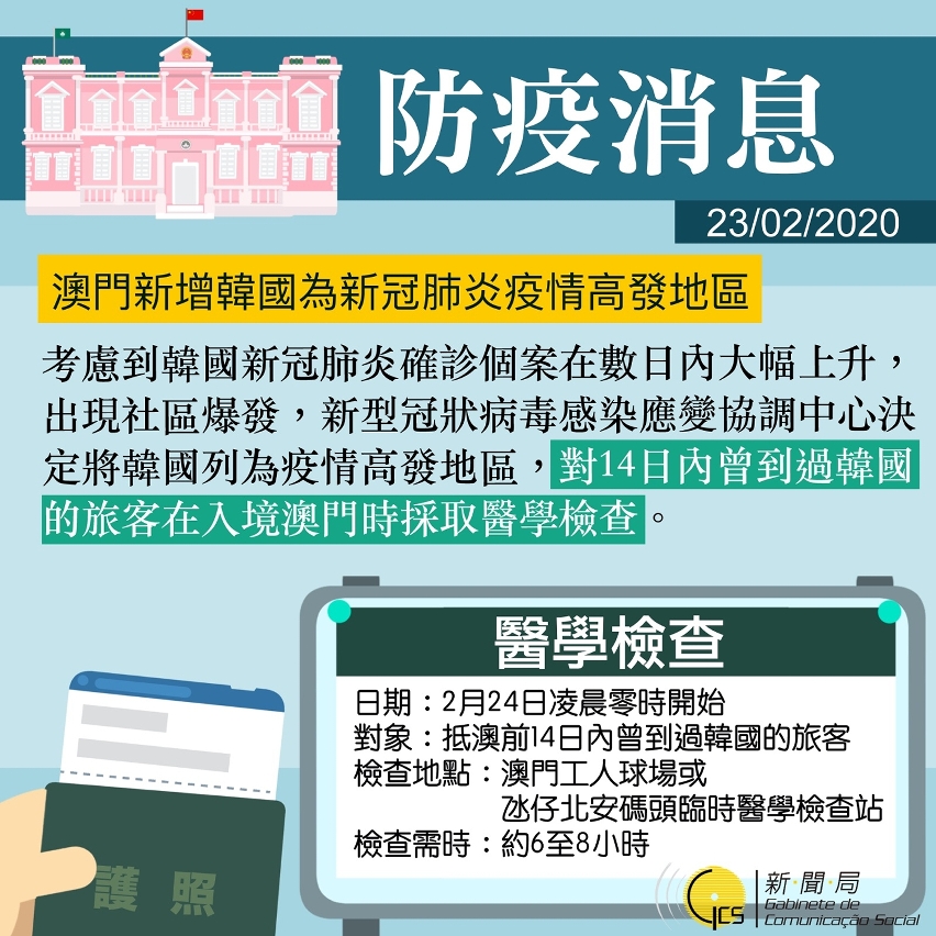 今日無新增確診病例 應變協調中心將韓國列為疫情高發地區