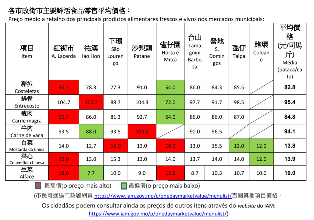 (市民可通過市政署網頁https://www.iam.gov.mo/c/onedaymarketvalue/menulist/查閱其他項目價格。)