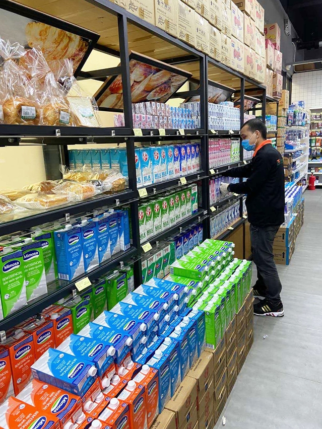 二月初至今,校園超市負責人張英宏幾乎每天早上工作到深夜,確保貨物供應穩定。疫情初期很多供貨商不營業,因此張英宏與同事安排了專人專車運貨到校園。二月初該超市還額外增加生鮮肉類的供應,確保師生買到足夠食材。