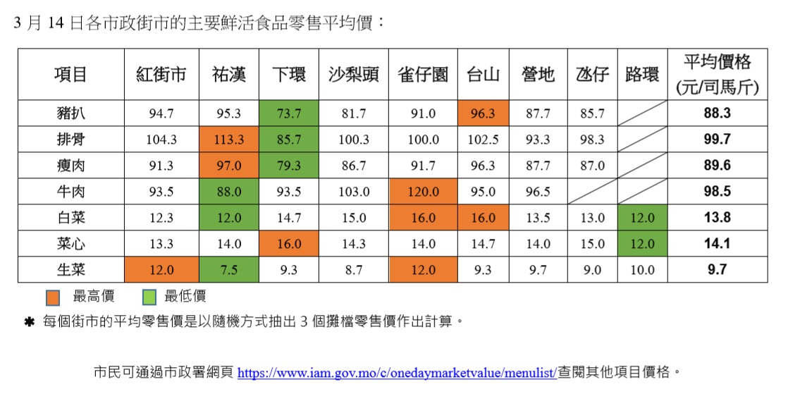 市民可通過市政署網頁https://www.iam.gov.mo/c/onedaymarketvalue/menulist/查閱其他項目價格。