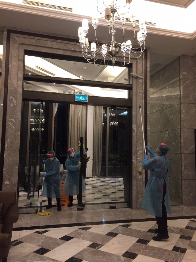 到確診感染患者住所的居住樓層及大堂等進行大型清潔