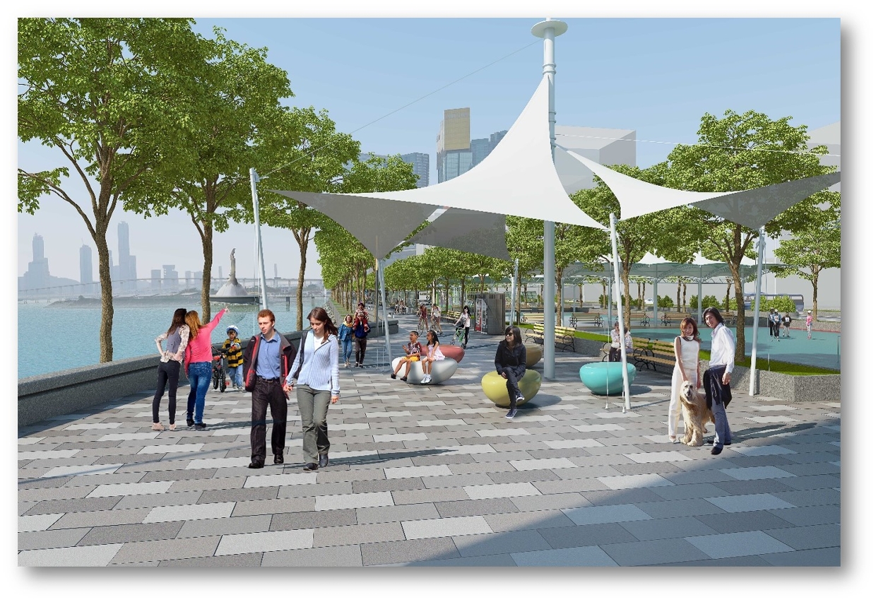 回應社會一直以來對優化新口岸海濱,增建休憩空間的訴求,市政署將在今年四月起,分階段建設串連科學館、觀音像,伸延至媽閣的澳門半島南岸海濱綠廊,為全澳市民提供大型多元海濱休憩空間,建設健康城市。工程並落實特區政府以工代賑政策,扶助本地中小企業,優先保障本地工人就業。