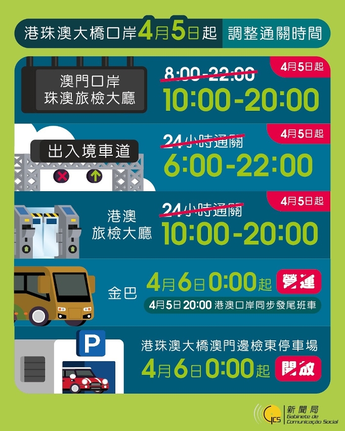 因應疫情,港珠澳大橋口岸4月5日起,調整通關時間。