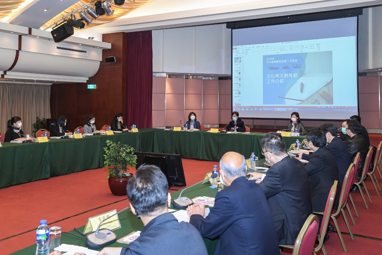 會議上,文化局及文化產業基金分別介紹了文創推動工作及應對疫情的工作部署。文化局今年計劃推出時裝設計樣版、電影長片、原創歌曲專輯製作的補助計劃。受到疫情影響,文化局取消春季“塔石藝墟”;延長“文化創意產業系列補助計劃"的執行期。為貫徹特區政府以工代賑的方針,文化局計劃推出“線上創意手作教學徵集計劃”,以及推出文創範疇線上學習、線上作品展示及線上展演節目演出等。