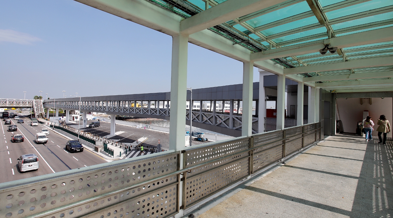 海港街和外港碼頭兩座行人天橋橫跨友誼大馬路,兩者相距約一百五十米,為方便市民和旅客通行,土地工務運輸局在兩座行人天橋之間建造連接橋,行人可直接使用連接橋往來兩座天橋;工程還在海港街的現有行人天橋兩側上落點加裝升降機,升降機內配備扶手、凸字按鈕、低位操作面板、防撞措施及話音提示系統等設施,同時具備變頻起動,即在較長時間沒有人使用時自動暫停電源等節能功能。