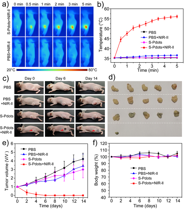 光聲成像介導的腫瘤診療是當前分子影像研究的前沿領域,發展多功能影像造影劑,可以為腫瘤的診斷和治療提供更全面的精準資訊,代表了高效率精密腫瘤診療學的發展新趨勢,而具有高穿透深度和較少組織暴露的近紅外二區(1000-1700 nm)多尺度的光聲成像和光熱治療有望成為一種新型的腫瘤精准醫療技術平台。然而,目前可用於影像介導癌症治療且可生物代謝的近紅外二區造影劑極少,因此極大限制了這種綜合診療平台的發展。