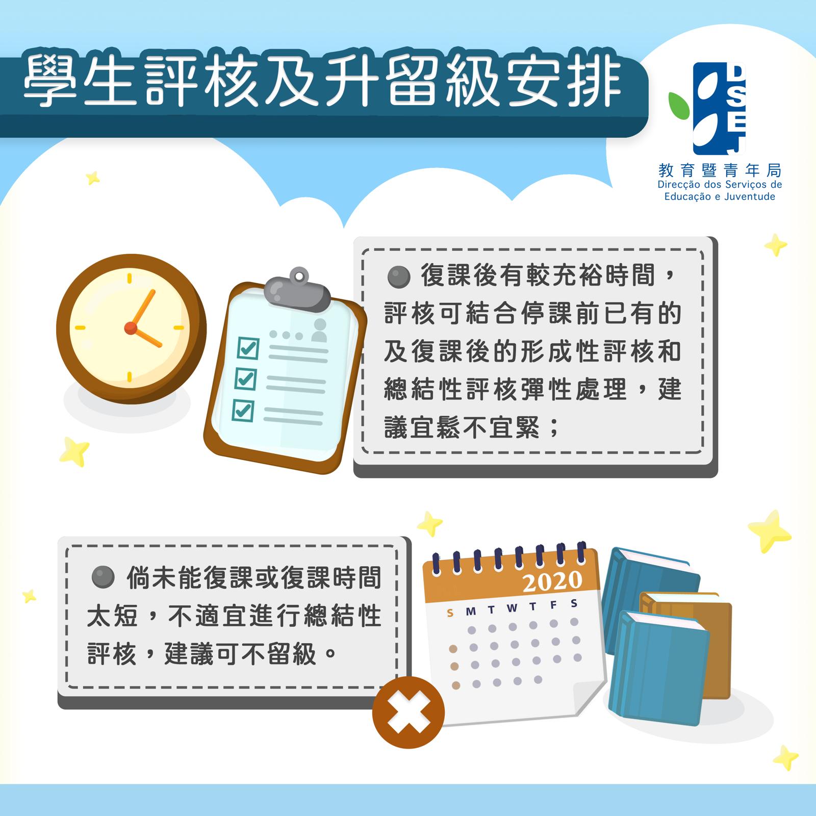 倘復課後,本澳出現確診個案時,將與衛生部門商討按個案的不同性質,研判是否需要全部或部分學校停課,或無須停課。