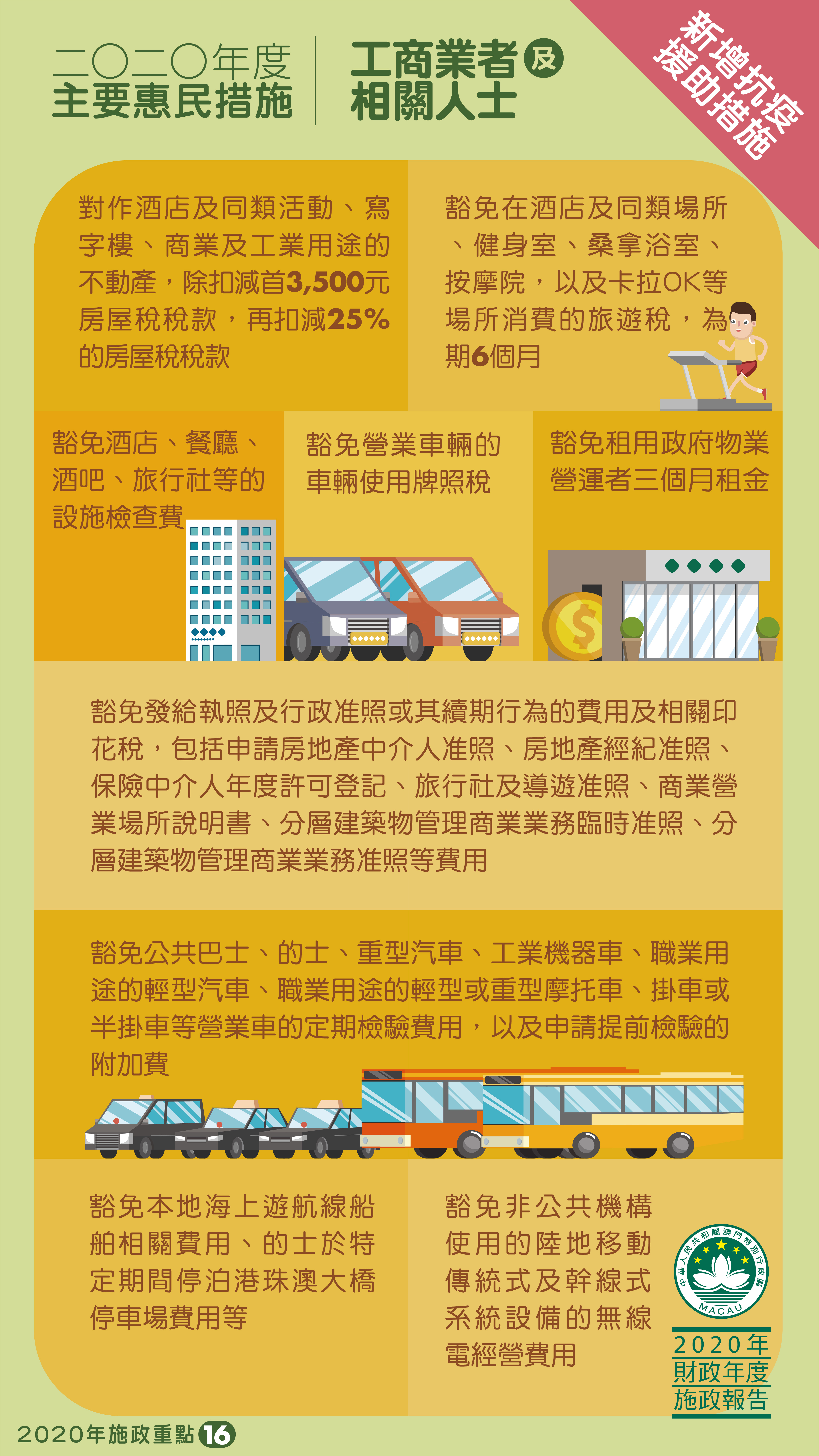 【圖文包】2020年度主要惠民措施:工商業者及相關人士(新增抗疫援助措施)