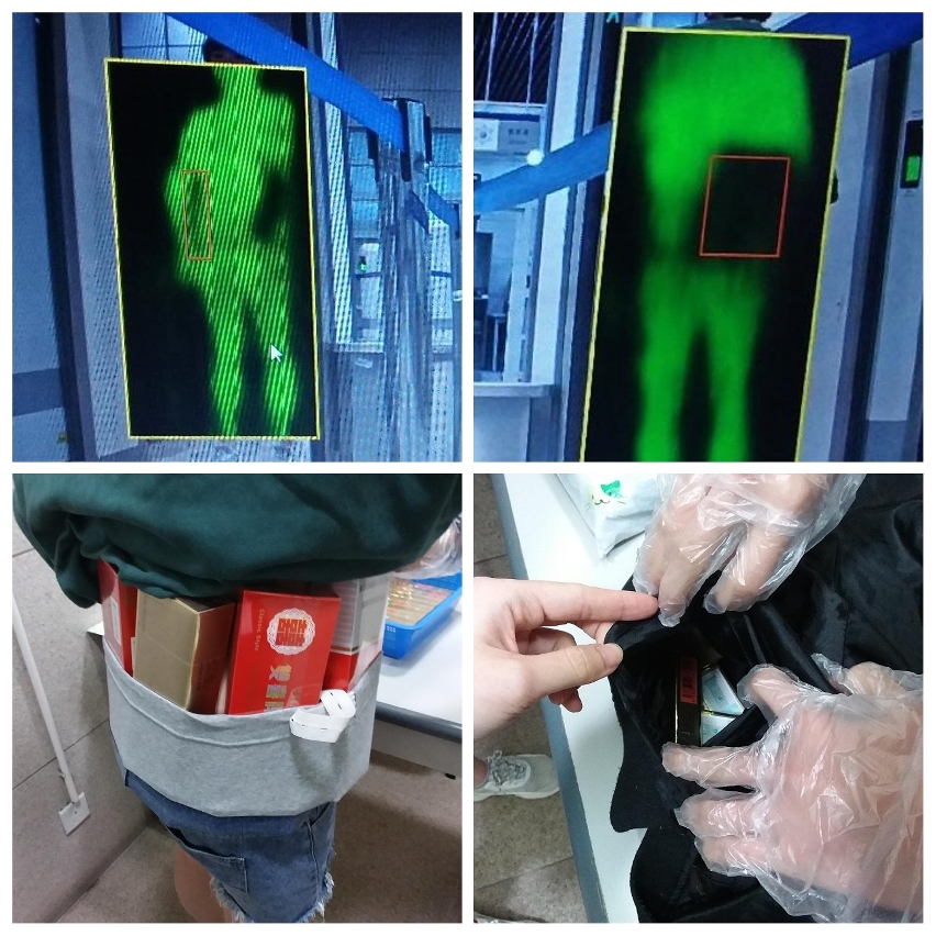 海關人員再於29日及30日,利用太赫茲人體成像安檢系統篩查出三名入境人士,懷疑其身上藏有可疑物品,關員遂對三名人士作詳細檢查,發現三人的腰間及背包內分藏有400支、1,680支及400支未完稅香煙。