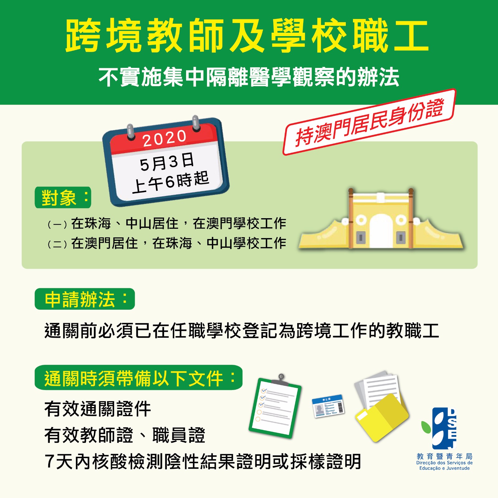 跨境教師和學校職工— 不實施集中隔離醫學觀察的辦法