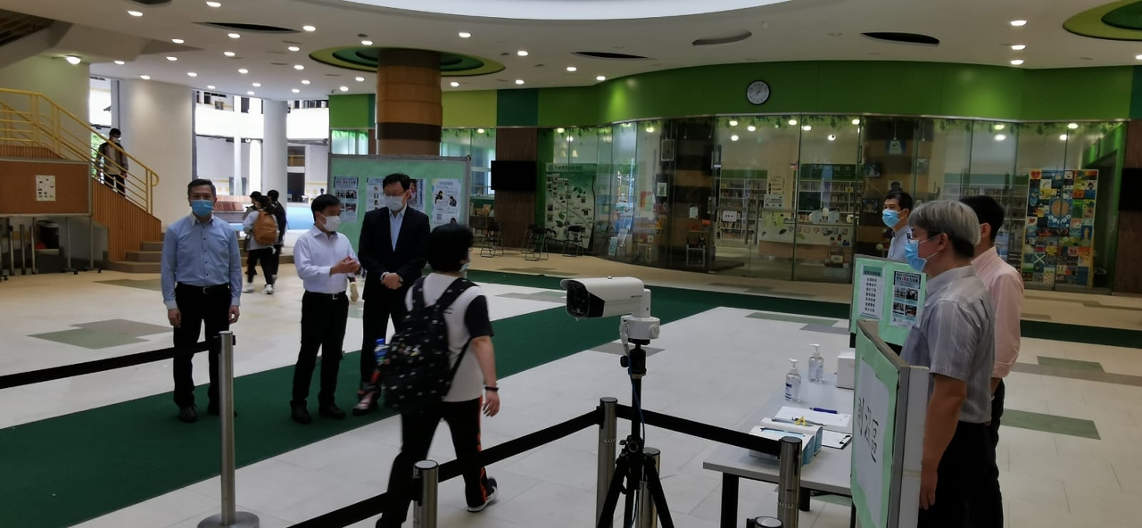 復課首日,教青局領導、主管及工作人員到澳門及離島各區瞭解全部復課學校的運作及學生上課情況。今天路面交通情況與一般上學日情況相若,大多數學生提早出門,亦有學生為較好掌握時間選擇步行上學。學校安排值班老師在校門進行晨檢,佩戴口罩的師生進入校園時,需要踏過消毒墊、出示個人健康聲明、接受體溫檢測和清潔雙手,然後按序及保持距離進入課室上課。復課首日的整體情況順暢。