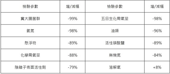 經落實上述綜合治理措施,黑沙環馬場北大馬路沿岸水污染問題改善明顯。根據現場分析及檢驗結果,過往對居民生活造成嚴重影響之臭味問題已得到明顯改善;而沿岸水質方面,水中污染物濃度顯著降低,當中糞大腸菌群、五日生化需氧量及氨氮分別減少了約99%、98%及98%。此外,經巡查發現沿岸灘塗已開始吸引了部分魚類及鳥類等生物棲息,沿岸生態環境逐漸修復。
