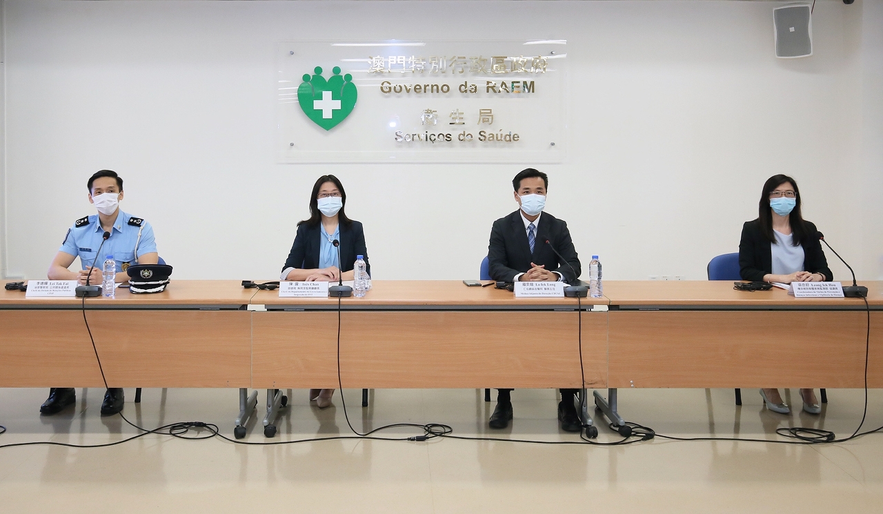 新型冠狀病毒感染應變協調中心於今(13)日舉行例行記者會,仁伯爵綜合醫院羅奕龍醫務主任、旅遊局執照及監察廳陳露廳長、治安警察局公共關係處李德輝處長、疾病預防控制中心傳染病防制暨疾病監測部梁亦好協調員共同會見傳媒。