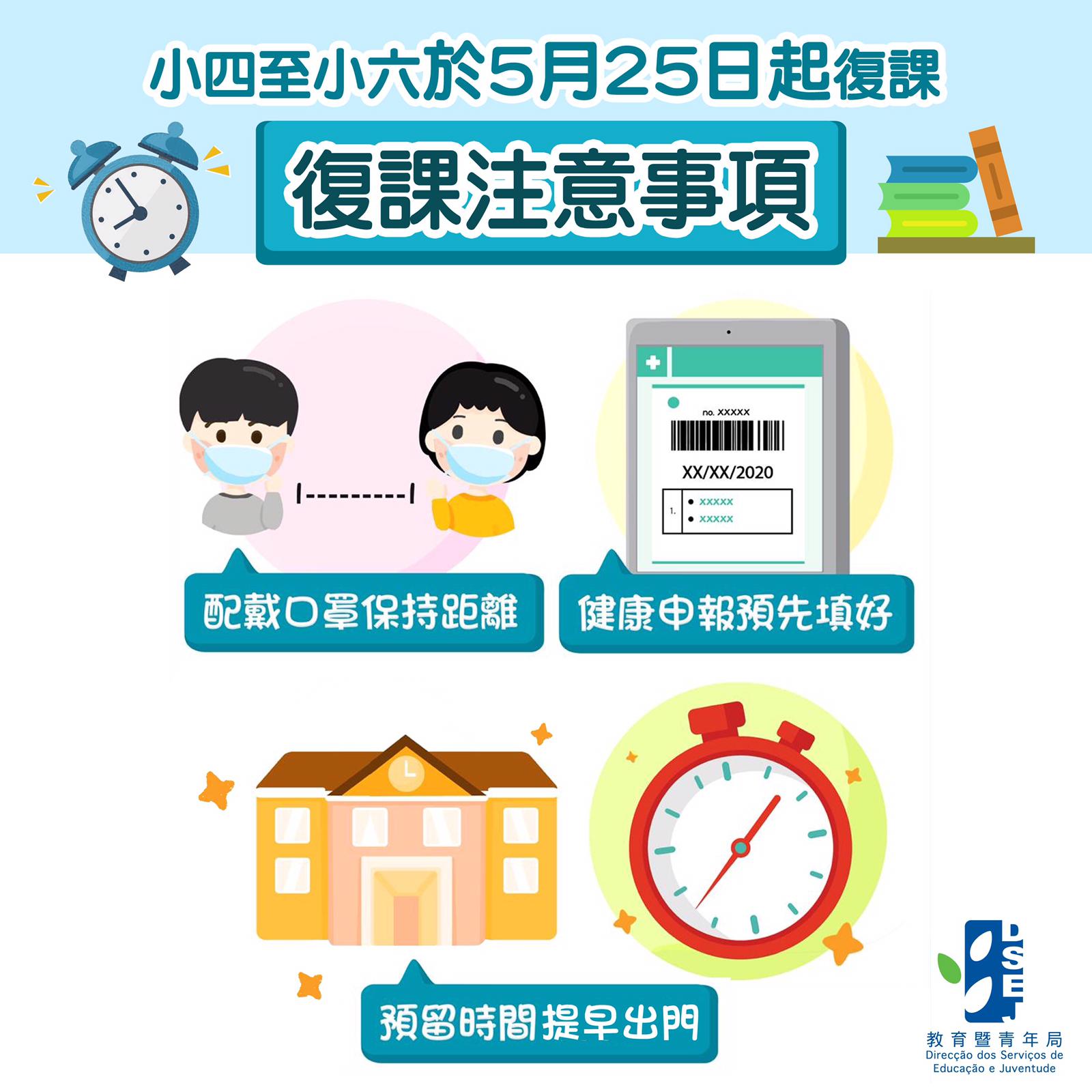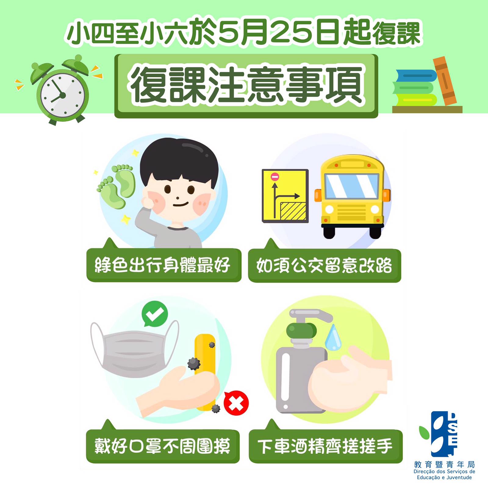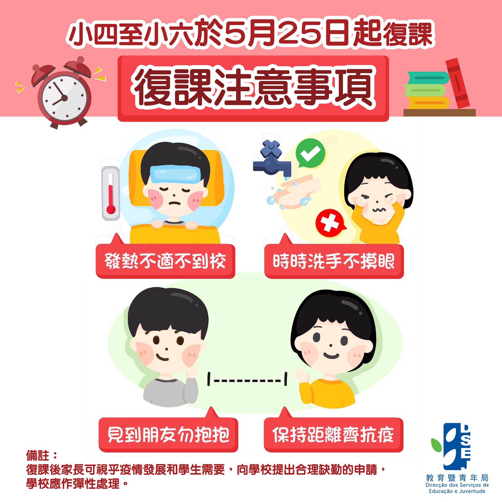 【小四至小六於5月25日起復課】復課注意事項圖文包
