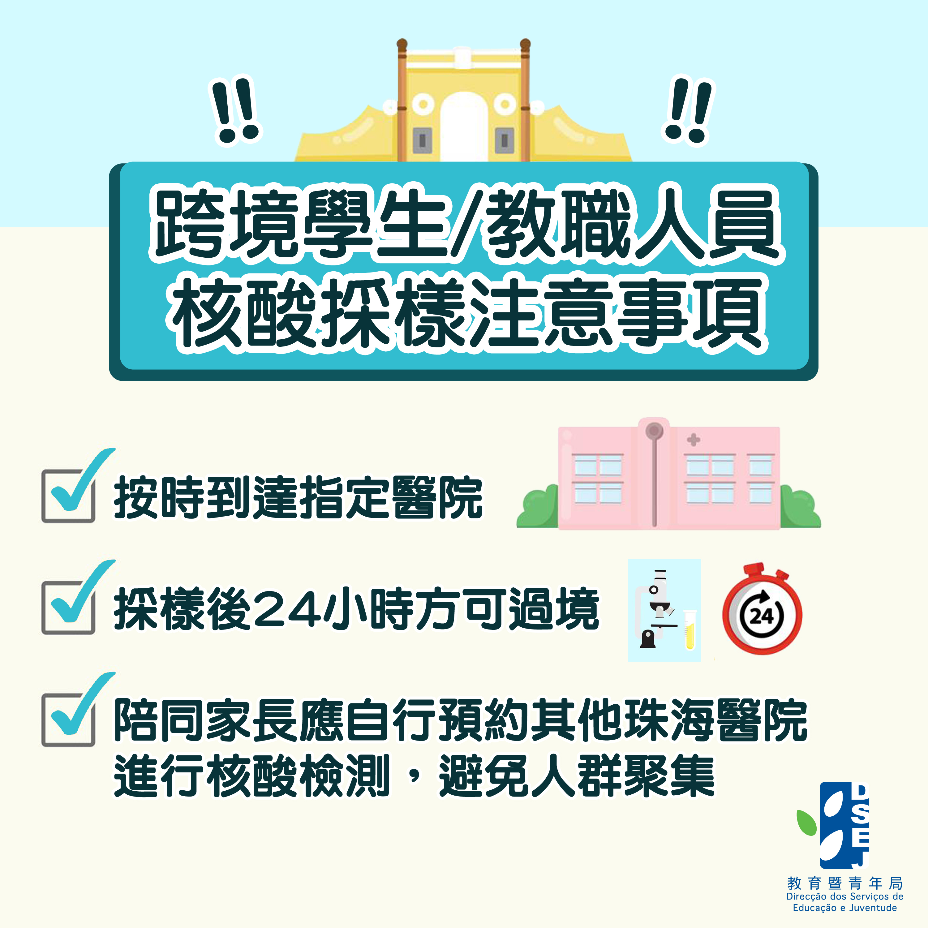 跨境學生/教職人員核酸採樣注意事項