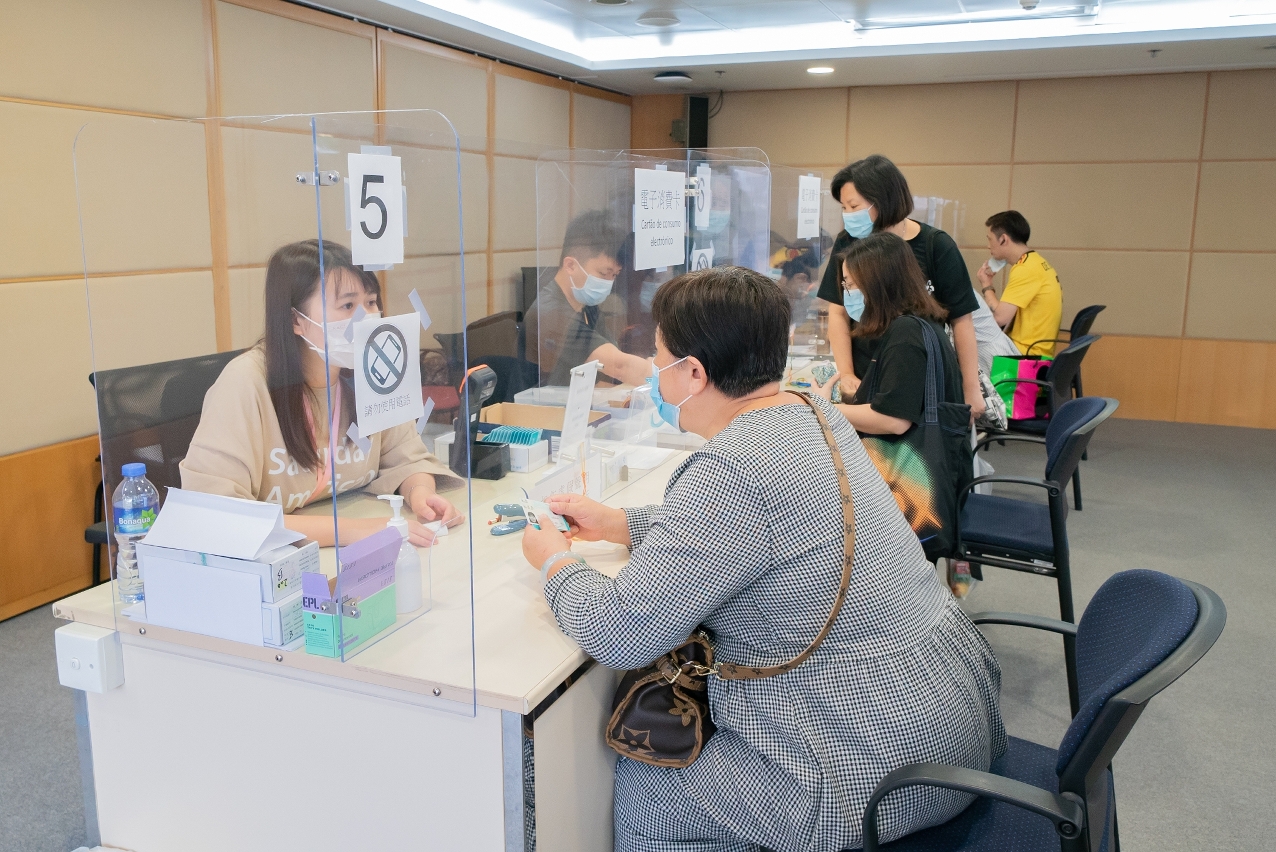 特區政府早前已因應疫情變化延長了消費卡的領取期限至7月17日,本月起開設的四個領卡服務點運作暢順,截至5月20日已派卡14,378張。自領卡期開始,累計有約59萬人已領卡,經濟局呼籲未領卡市民盡快前往以下任一地點領取電子消費卡﹕