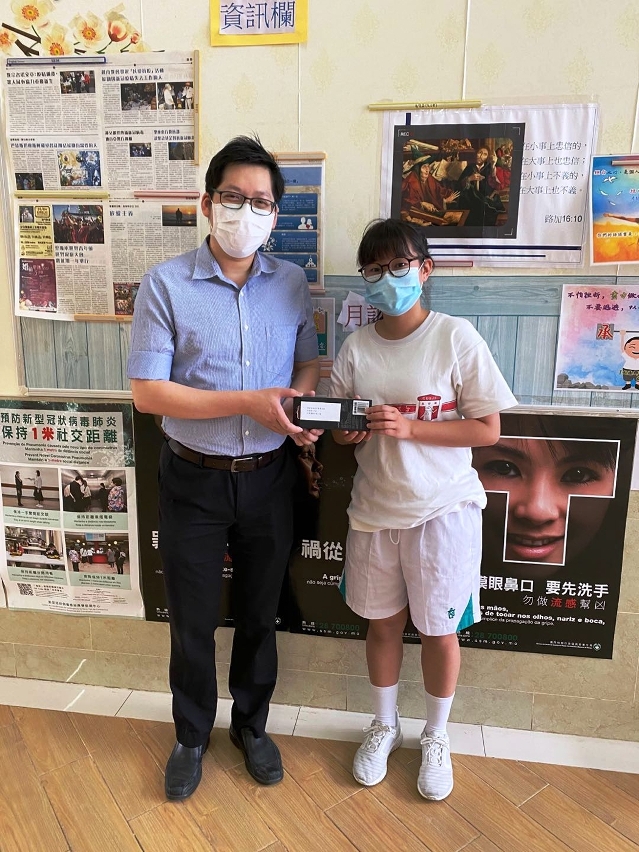 因受新型冠狀病毒肺炎疫情影響,為避免人群聚集,司警局將原定的頒獎儀式延至本澳中學復課後進行。日前,司警局按照得獎名單將獎品送到各校,再由校方代表頒發給得獎者。有得獎的同學表示,平日也經常留意警方發放的防罪資訊,並會與家人朋友分享,當得知司警局舉辦防罪知識問答活動,馬上報名參與,對於能夠獲獎感到非常欣喜;也有得奬的同學表示經由朋友推介參與此次活動,並認為活動以網上形式進行,十分便捷,且切合年輕人瀏覽和接收資訊的習慣,希望局方日後多透過網絡平台進行防罪宣傳。