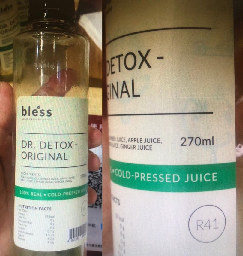 市政署透過恆常食品事故監察系統,獲悉香港食物安全中心公佈,於一個香港生產的果汁飲品樣本中驗出含十億分之六十三的展青霉素。涉事產品名稱為「DR.DETOX-ORIGINAL」,品牌是bless,原產地為香港,香港分銷商為Bless International Group Limited,容量是每瓶二百七十毫升,此日期或之前食用:二○二○年七月五日。