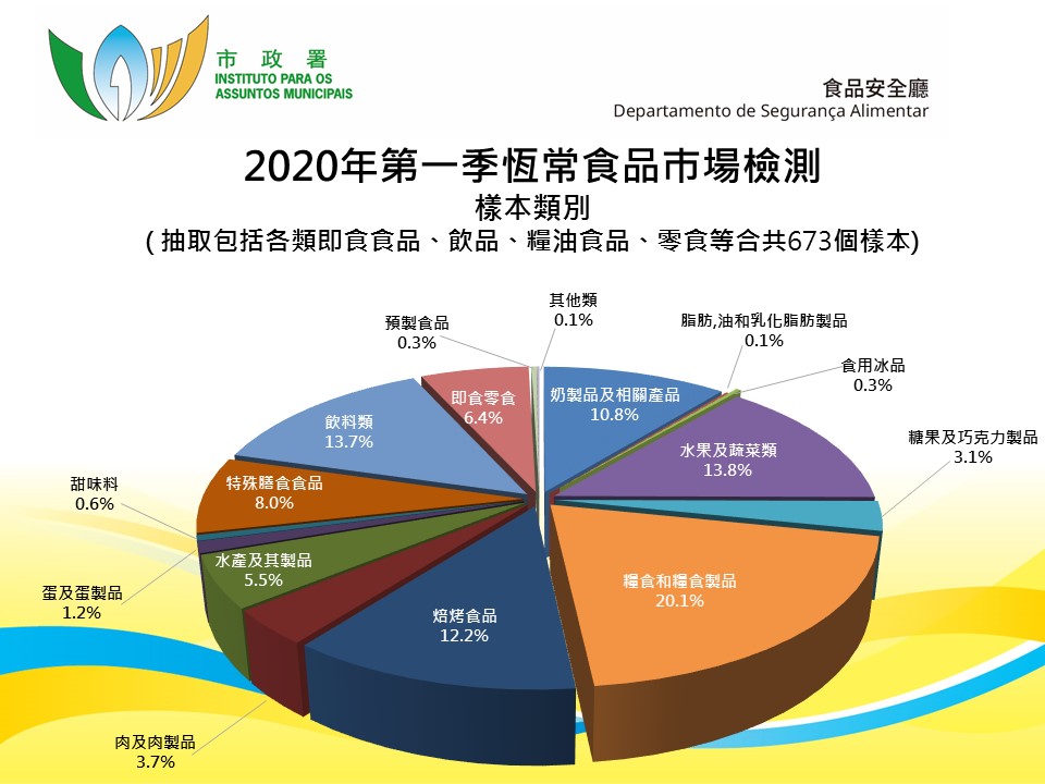 市政署持續透過恆常的食品監察及檢測機制,評估市售食品的安全風險及衛生狀況。本年第一季在市面上共抽取了六百七十三個食品樣本進行檢驗,整體合格率達99.6%。