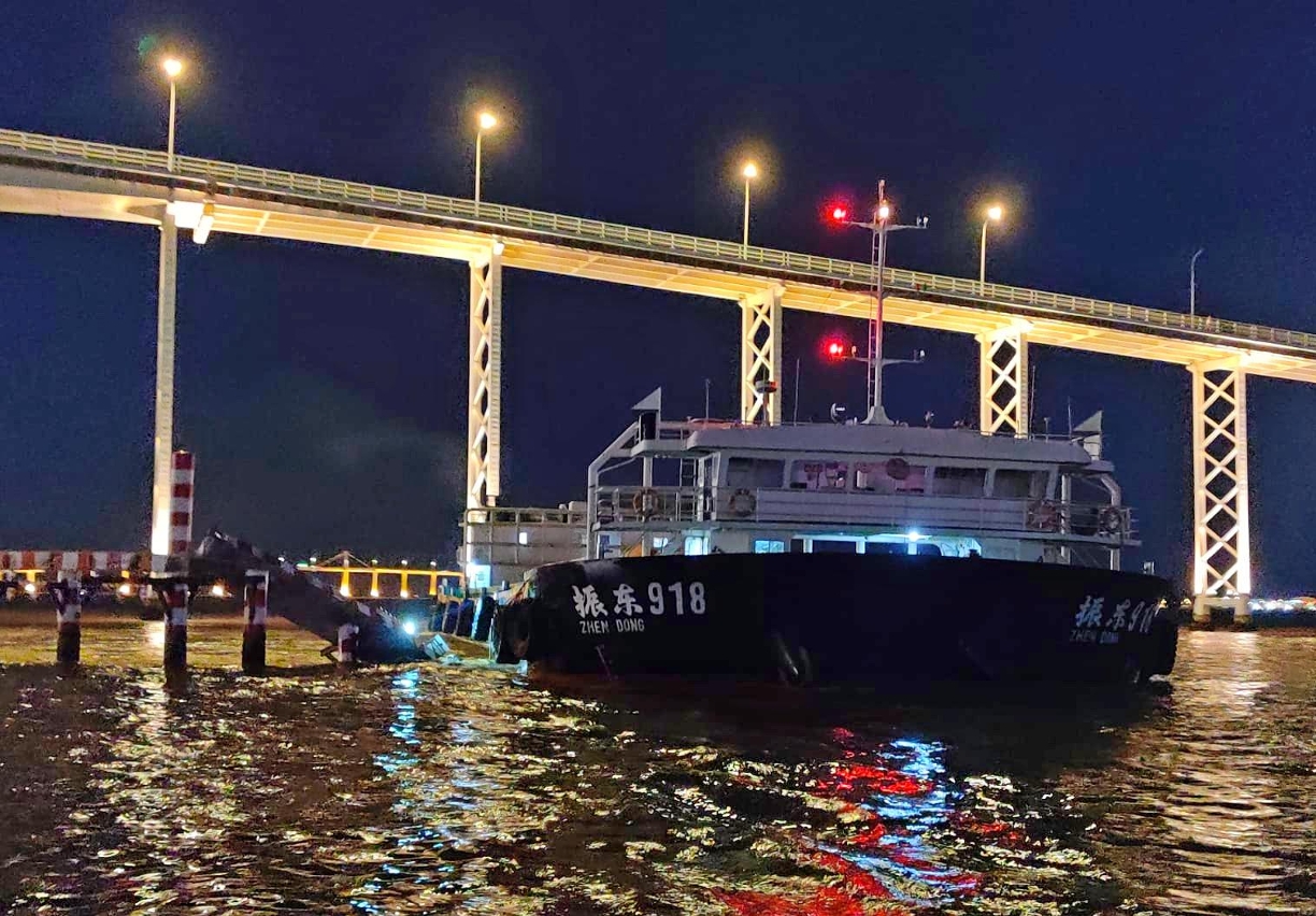 一艘運沙船昨晚駛經嘉樂庇大橋時偏離航道,撞毀大橋南側護橋欄,海事局馬上派船到現場處理。事件中無人受傷。
