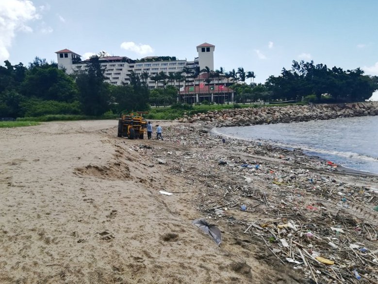 颱風過後有大量垃圾沖上海灘,經過約5天的清理工作,清潔專營公司已經把海灘上大部份垃圾清走,目前尚餘黑沙阿婆秧附近的清理仍在進行,並會於今日內完成。在6月14至19日期間,清潔專營公司在兩個海灘共清理約40噸垃圾,以樹枝和竹枝為主,亦有部份為生活垃圾。局方會持續留意沿岸和海面情況,如市民發現海灘有垃圾堆積,可致電66585336通知局方,以便跟進清理工作。