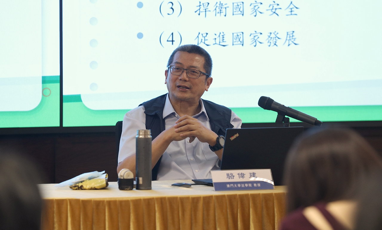 今年首場培訓於6月20日下午在宋玉生廣場中航大廈六樓法務局多功能室舉行,共有六十名來自本澳三十所中學的老師參與。培訓內容主要包括兩部分:第一部分由澳門大學法學院駱偉建教授主講《憲法》與《基本法》、《維護國家安全法》以及國家象徵。駱教授結合法律及社會實況,深入淺出地講解作為澳門特區憲制基礎的《憲法》與《基本法》,彼此間的關聯性以及中央與澳門特區之間的關係等,同時亦論述了《維護國家安全法》的重要性及其立法意義。此外,還向老師介紹了國旗、國徽、國歌的歷史由來、精神內涵及相關法律規定。透過駱教授生動的講解,教師們進一步領會了“一國兩制”的深刻含義,更加充分認識到在澳門新一代中培養國家認同感和歸屬感的必要性和迫切性。第二部分内容由法務局人員負責講解,主要圍繞預防青少年犯罪方面的法律規定,尤其涉及毒品犯罪、網絡犯罪、性犯罪、校園欺凌、刑事歸責年齡等方面的內容,旨在讓教師了解青少年犯罪的類型、性質及所須承擔的刑責,從而引起學校及教師的高度重視,加強對學生的法制教育,以防患於未然。