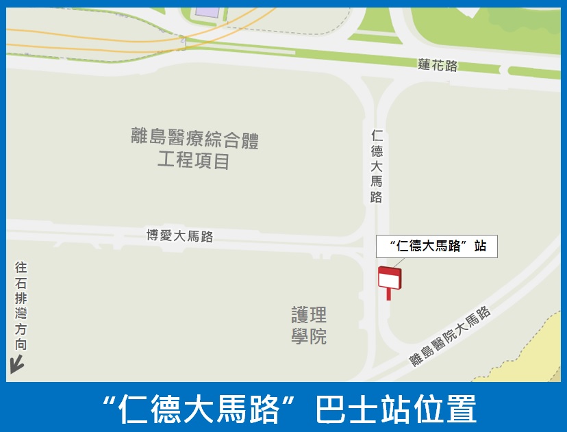 路氹城仁德大馬路近護理學院附近增設的臨時巴士站6月24日(周三)起正式調整為永久站,並命名為“仁德大馬路”站,供25B路線停靠,以配合離島醫療綜合體項目一帶的出行需求。