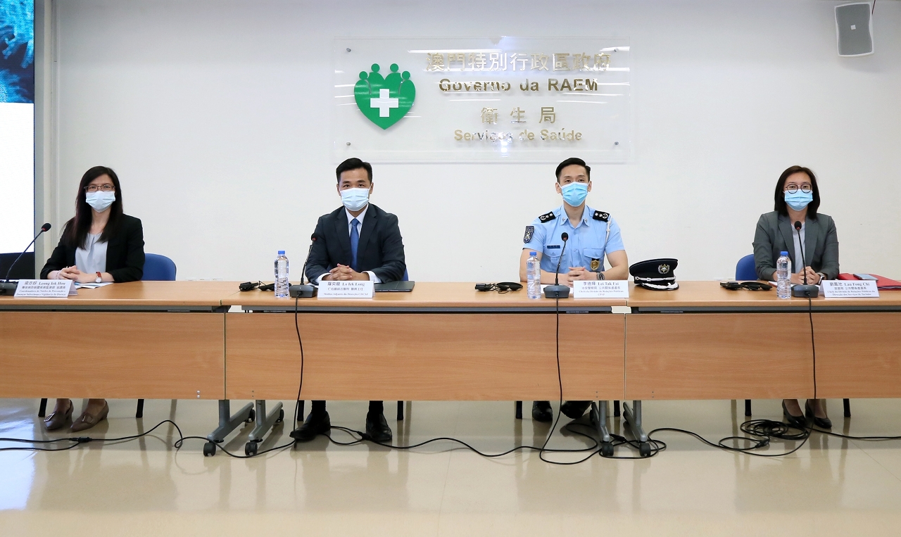 新型冠狀病毒感染應變協調中心(下稱應變協調中心)於今(1)日舉行例行記者會,仁伯爵綜合醫院羅奕龍醫務主任、治安警察局公共關係處李德輝處長、旅遊局公共關係處劉鳳池處長、疾病預防控制中心傳染病防制暨疾病監測部梁亦好協調員共同會見傳媒。