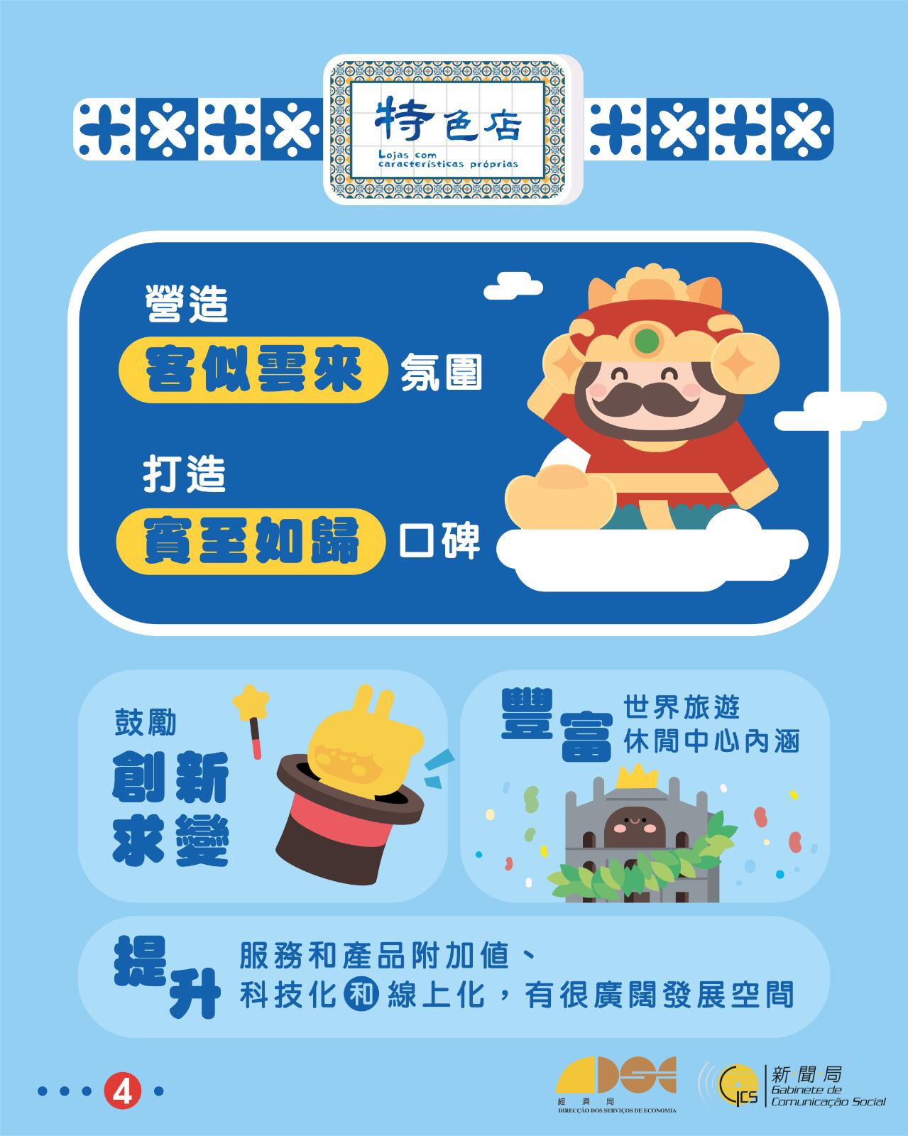經濟局透過跨部門合作,以多媒體、多渠道的宣傳方式,協助特色店提升吸引力和知名度。支持中小企業善用科技方式,拓展業務,革新經營模式,發展體驗經濟。