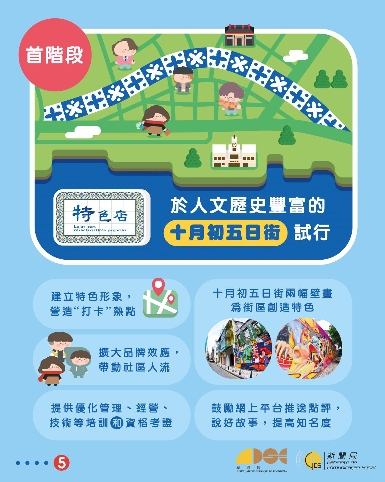 “特色店計劃”首階段於人文歷史豐富的街區—十月初五日街一帶試行,為街區建立特色形象,營造“打卡”熱點。同時將以不同模式,為特色店提供優化管理、經營、技術等的培訓課程和資格考證等支援,為推動特色店提質發展搭建台階。