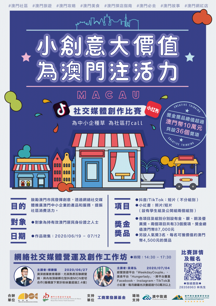 由經濟局與澳門中華新青年協會合辦的“小創意大價值 為澳門注活力”社交媒體創作比賽於6月19日至7月12日舉行。