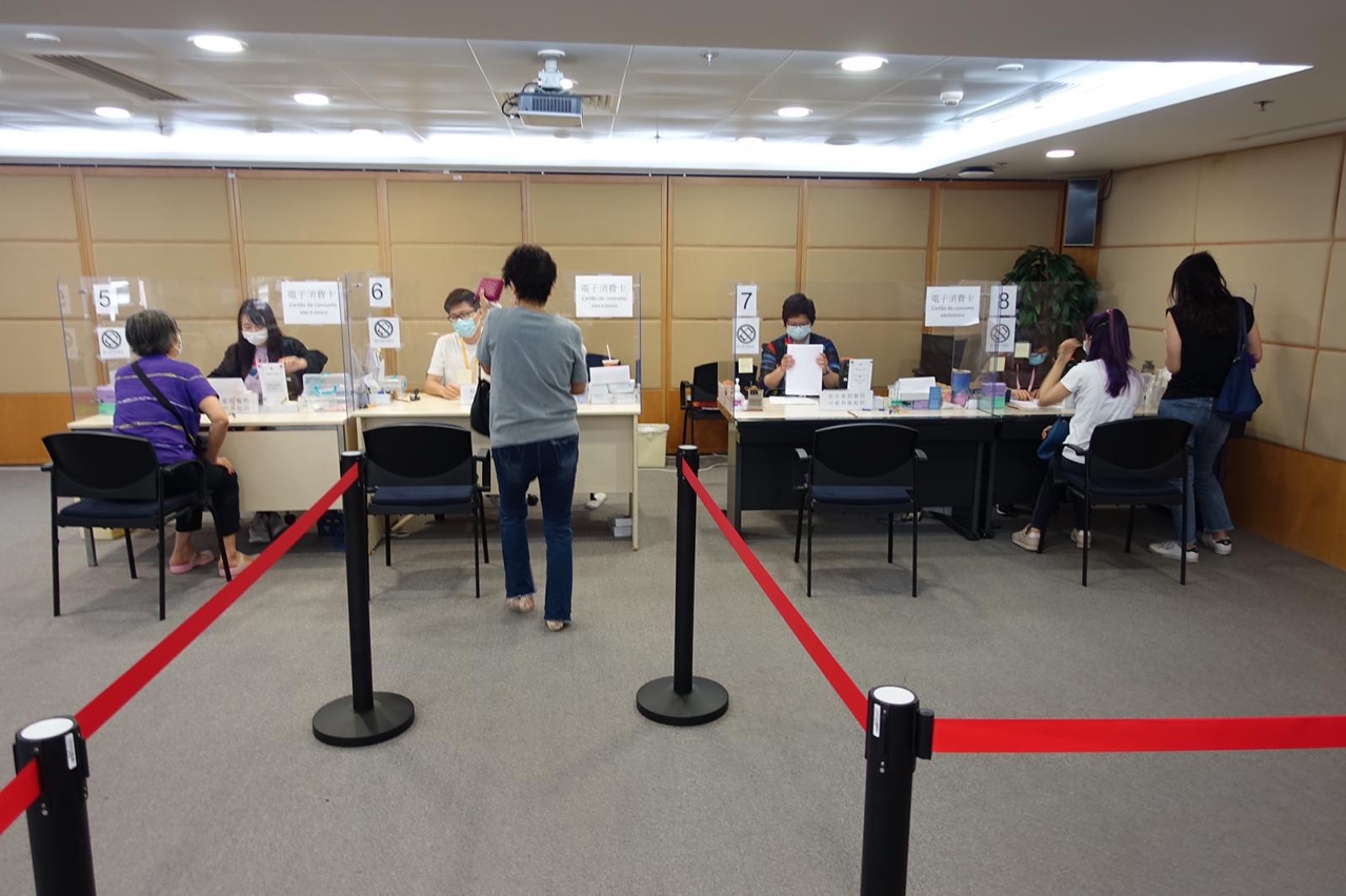 特區政府呼籲已登記但未領取第一期消費卡的居民,最遲須於今(17)日的辦公時間內,到以下4個指定政府服務點領卡: