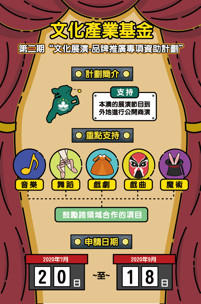 文化產業基金於7月20日至9月18日接受第二期“文化展演──品牌推廣專項資助計劃”申請。