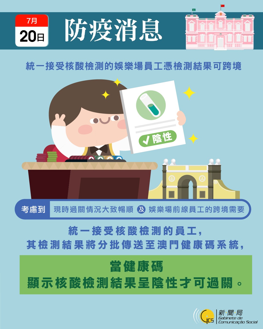 統一接受核酸檢測的娛樂場員工憑檢測結果可跨境