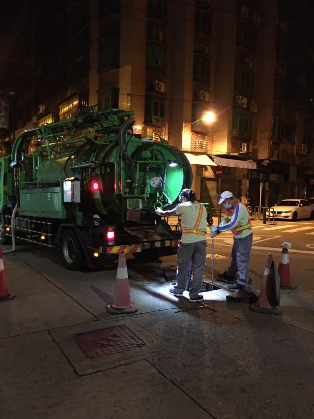 此外,市政署䅲查人員在建好才半年的通商新街下水道發現油污,現正密切監察該區的排污情況。而為清理交通繁忙的新橋區下水道,市政署特安排工作人員於週末凌晨時段疏通渠網,以減少對交通的影響。
