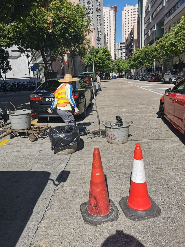 同時,市政署亦持續監察各市政雨水泵房運作,包括檢查泵房內水泵、電動水閘、後備電源、遠程監察系統及遠程控制系統的運作情況。市政署呼籲市民不要將垃圾、油脂等物料傾倒於公共路面上的雨水井,以免造成渠道堵塞及產生水浸風險。