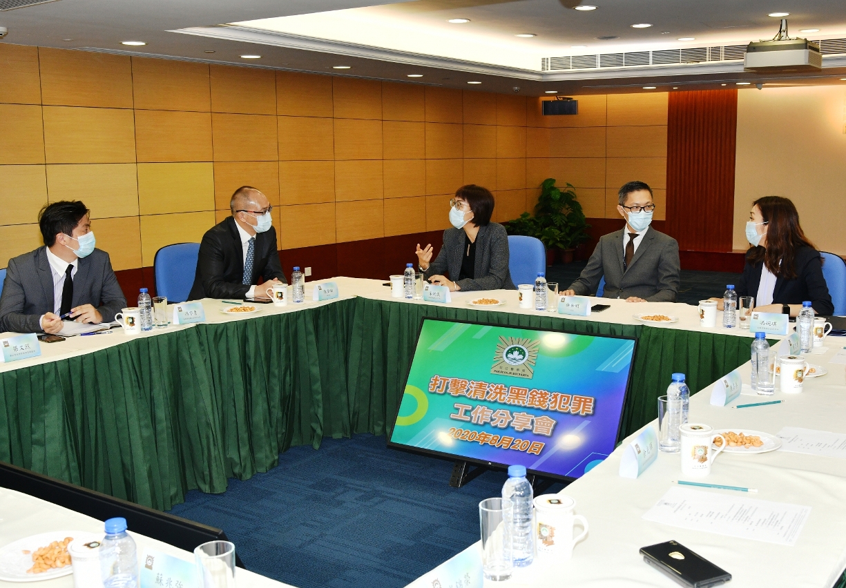 分享會於2020年8月20日在司警局總部大樓舉行,司警局局長薛仲明、副局長陳堅雄、刑事調查廳廳長黃志康、博彩及經濟罪案調查廳廳長梁文照,以及從事調查清洗黑錢罪案、資訊罪案、博彩罪案、毒品罪案等共18名領導主管和刑事偵查人員出席,金融情報辦公室主任朱婉儀、副主任馮婉琪應邀率轄下人員到來分享經驗。