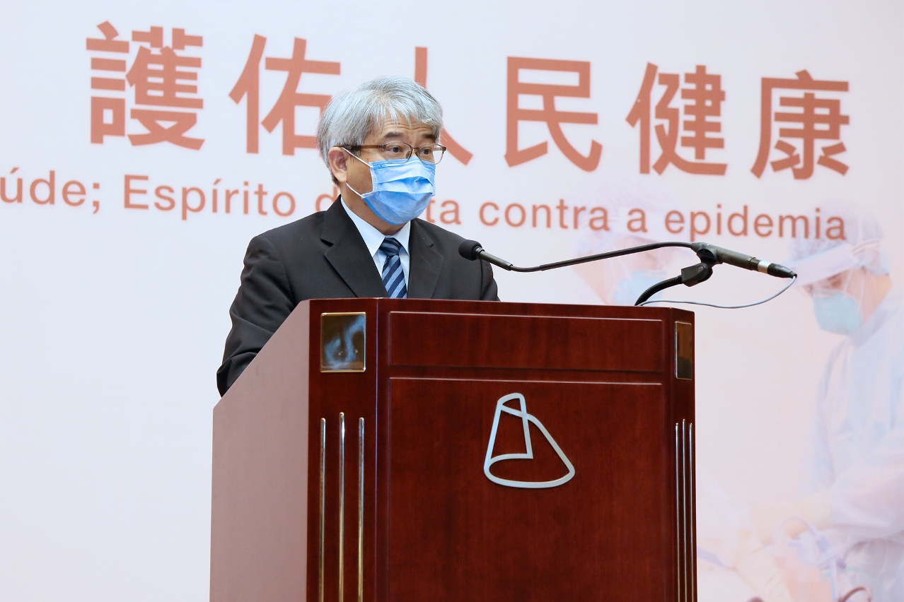 李展潤局長在典禮上代表社會文化司歐陽瑜司長致詞時表示,是次新冠肺炎疫情是近百年來人類遭遇的影響範圍最廣的一次全球性大流行病,對全世界來說都是一次嚴峻的考驗。特區政府在國家的支持與行政長官的領導下,亦有賴社會各界團結一心,共克時艱,各項防疫政策和措施方能有效執行,取得明顯的成效。目前,疫情在全球蔓延的態勢並未得到有效遏制,鄰近地區疫情防控形勢出現反覆,澳門的經濟與社會發展為此亦受到明顯的制約。