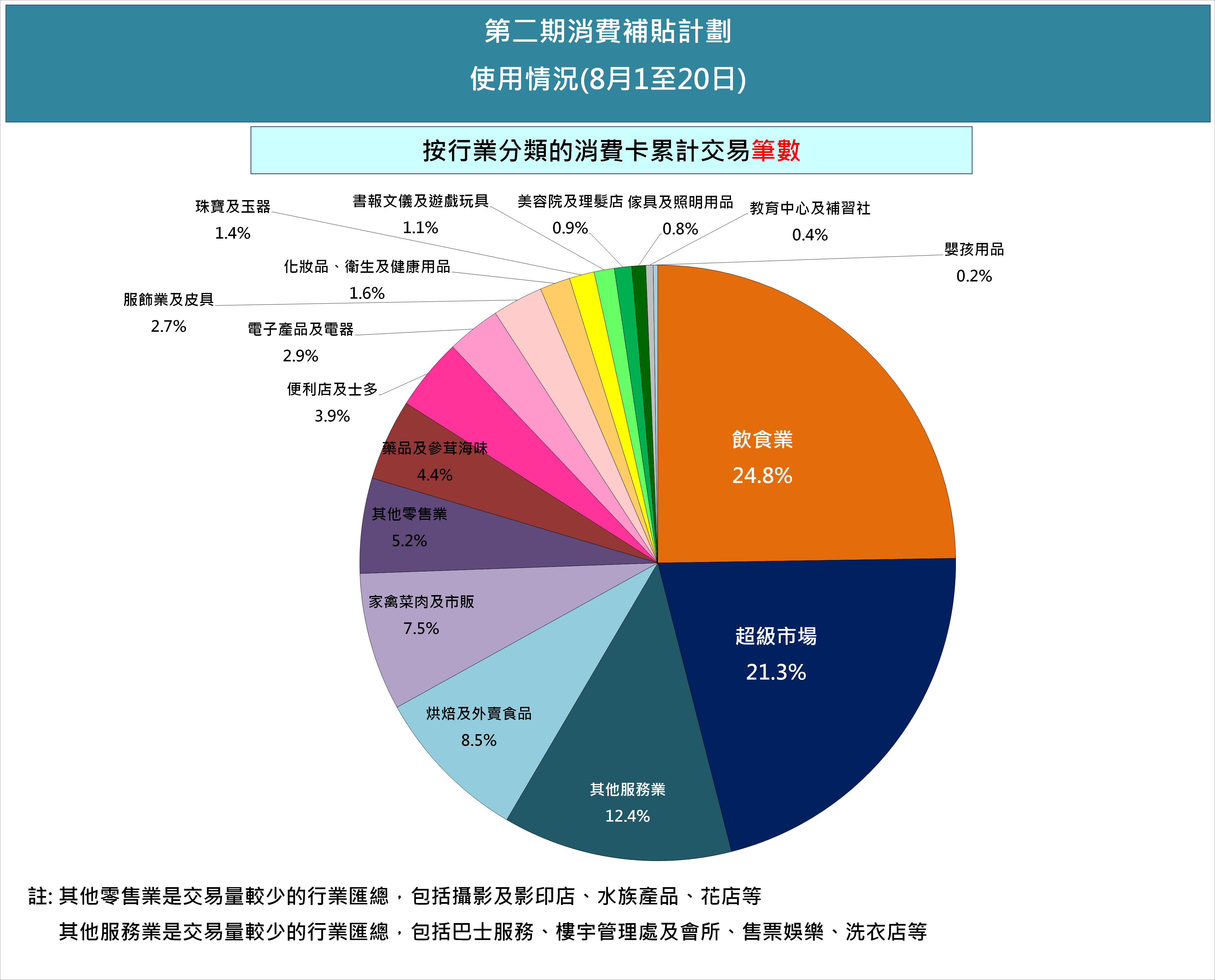 零售業方面,超級市場的交易額佔比最高,佔總體消費卡交易額的19.6%。