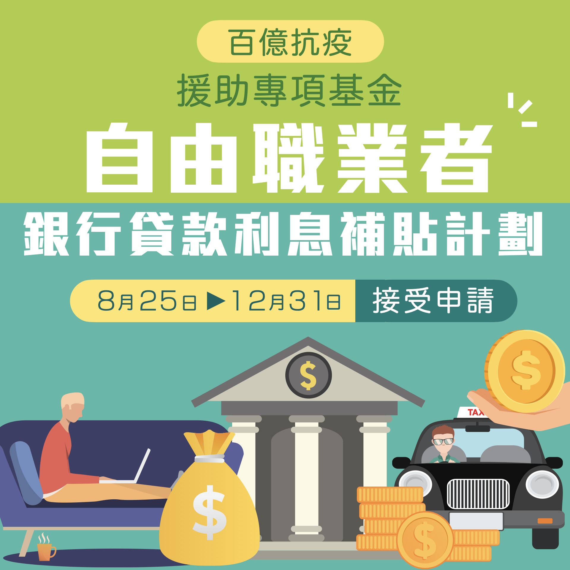 為協助自由職業者應對疫情衝擊,緩解財務壓力,“自由職業者銀行貸款利息補貼計劃”將於明日(25日)起接受申請。合資格的自由職業者,可就一筆由澳門銀行批出、並非用於購買不動產或金融投資產品的貸款,申請上限為4個百分點的利息補貼,補貼年期為兩年。
