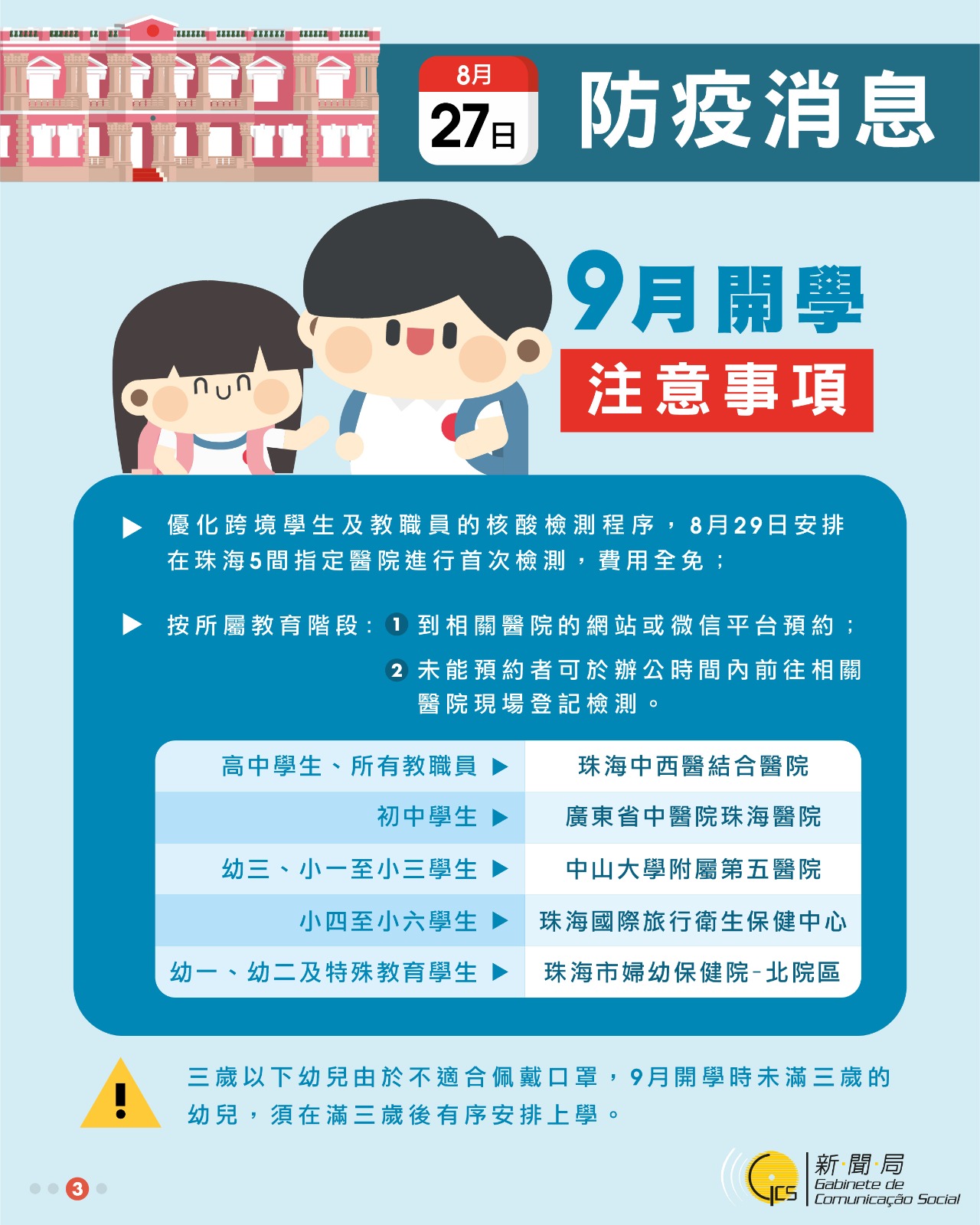 本澳連續151天無本地病例報告 當局因應新學年開學推出各項安排及支援