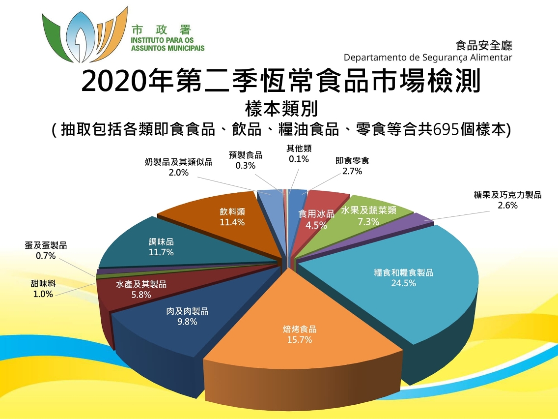 市政署持續透過恆常的食品監察及檢測機制,評估市面售賣食品的風險及衛生狀況,在本年第2季共抽取了695個食品樣本進行檢驗,所有樣本的檢測結果均未見異常。