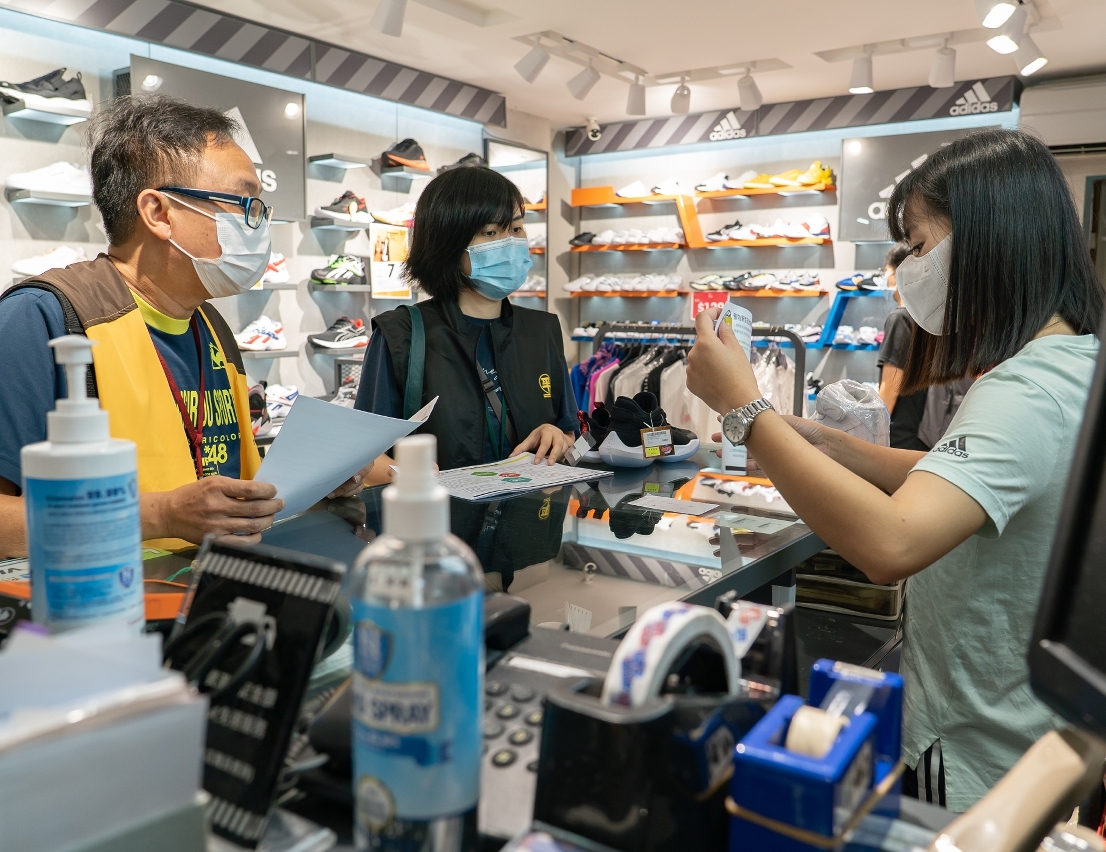 如條件許可,為員工及顧客測量體溫,及要求提交“澳門健康碼”。場內人員須配戴口罩及保持1米距離,須控制人流減少聚集及做好場內清潔消毒,以降低病毒在零售場所散播的風險。