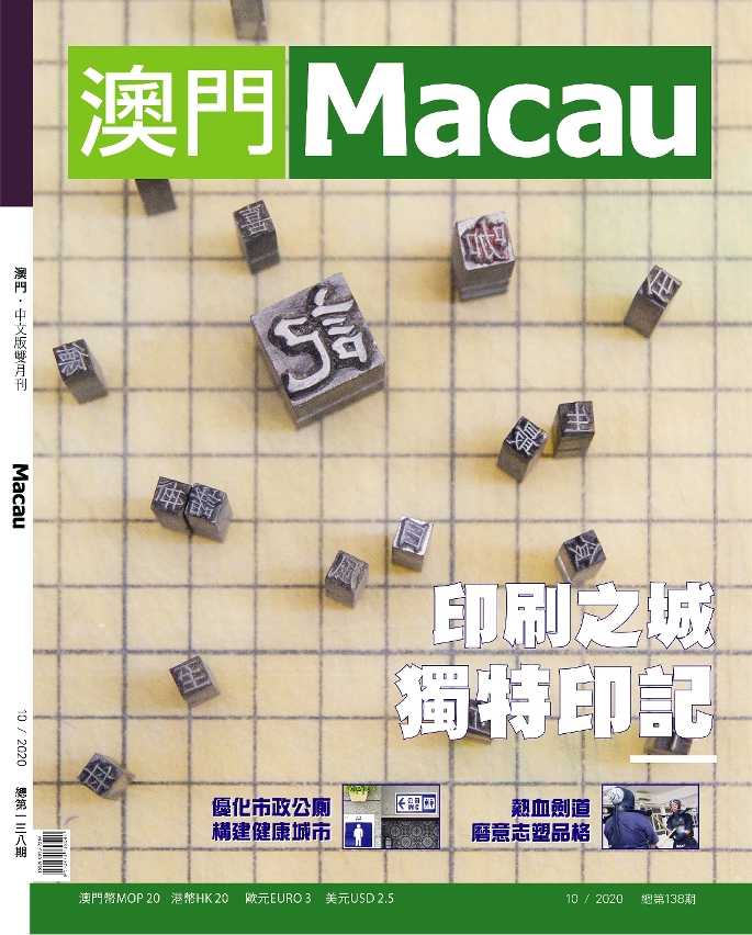澳門,是中西文化交融之地,1588年,中國首本以鉛活字印刷的拉丁文書籍便是在澳門誕生……隨着印刷技術的不斷提升和服務不斷創新,澳門的印刷業亦不斷蛻變、更新、擴充……在澳門印務局成立120周年之際,《澳門》雜誌帶領讀者開啟一段尋蹤澳門印刷故事的旅途。〈刻在時光裡的歷史印跡 印務局邁向120周年〉專訪了印務局局長陳日鴻,為讀者介紹印務局的最新發展;〈環保高效 與印務同行〉印務局商業組組長吳文桂介紹印務局如何利用新引入的多項先進環保器材,應對印刷行業的未來發展需要;〈印刷機中的七彩人生〉專訪了曾於印務局工作近30年的資深員工廖品賢,回看印刷業的光輝歲月。