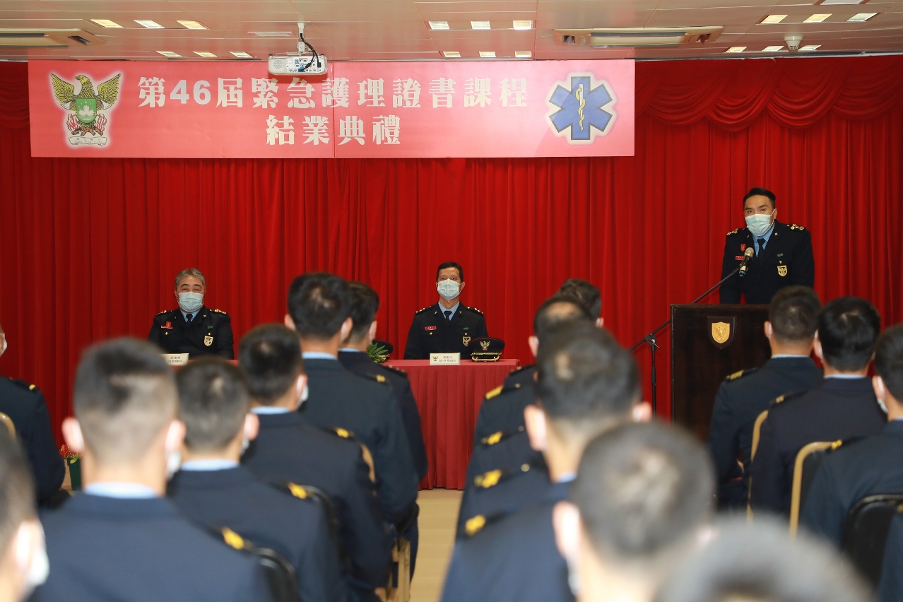 消防局《第46屆緊急護理證書課程》於2020年11月17 日舉行結業儀式,儀式由消防局鄺逸富 代副局長擔任主禮嘉賓,並致詞勉勵結業學員須時刻認真履行救急扶危之重任,緊記自己的職責,為市民提供優質的救護服務。